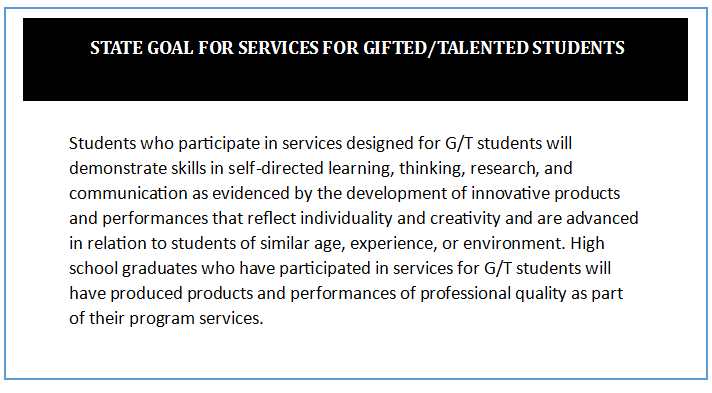 The Region 17 Education Service Center Gifted and Talented Cooperative aids districts as they design, implement, and conduct programs for advanced and gifted students that encourage skills in self-directed learning, thinking, research, and communication as evidenced by development of innovative products and performances, and ensures that districts are compliant with the Texas State Plan for the Education of Gifted/Talented Students.
